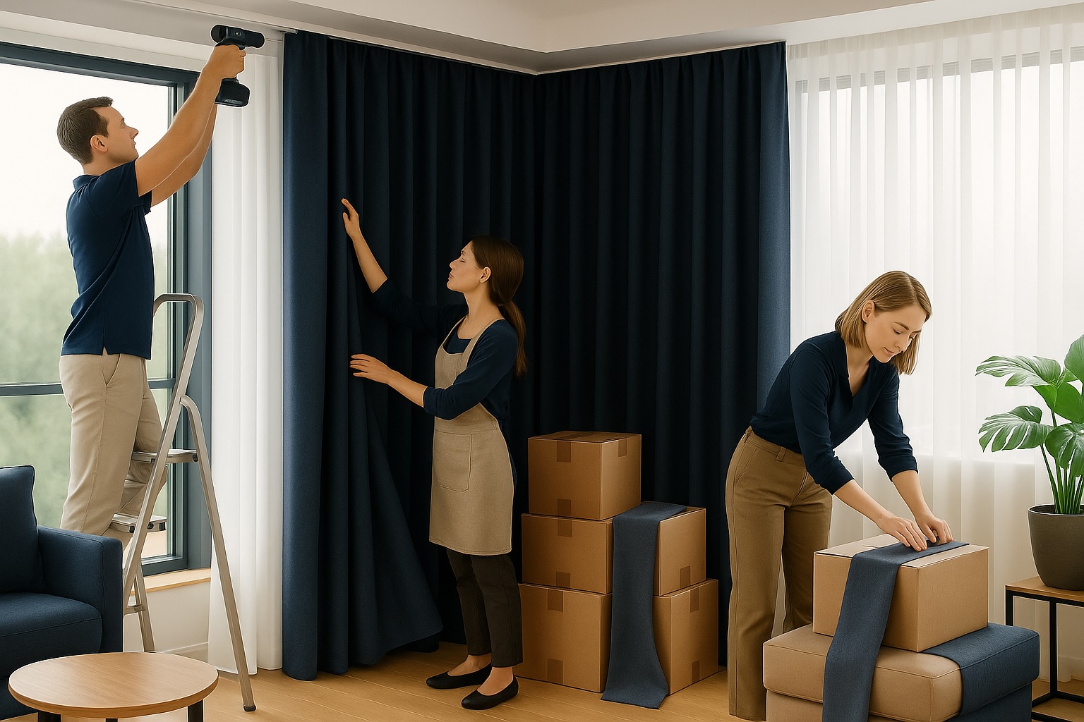 Chez Grimpe Aux Rideaux, chaque projet suit une méthode claire et rigoureuse : conseils personnalisés, sélection des tissus, prise de cotes, fabrication sur-mesure et installation professionnelle.